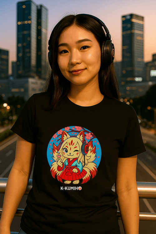 La kumiho (구미호) è una creatura della mitologia coreana, una volpe che dopo mille anni di vita si trasforma in un essere magico con nove code. Nelle leggende antiche viene spesso descritta come ingannevole e affascinante, capace di assumere forma umana per sedurre o ingannare gli uomini. La nostra k-kumiho, è una versione moderna misteriosa ma tenera buona e giocherellona, più incline a ridere e a divertirsi che a tramare inganni, vive a metà tra il mondo umano e quello spirituale.